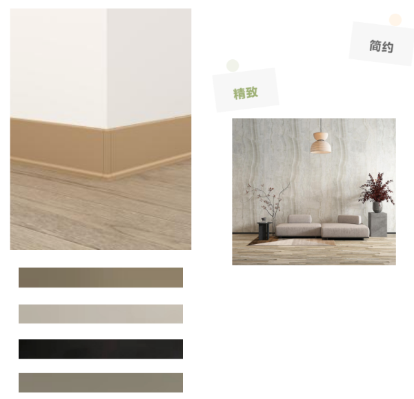 圣象極簡A4系列金屬腳線,采用簡約精致的造型設(shè)計,極致流暢的直線造型讓空間的延伸感更強,上下采用流線型圓弧設(shè)計,這種造型設(shè)計不僅在視覺上整體簡約大方,優(yōu)雅而不顯鋒芒,還能讓地面與墻面的銜接更為流暢自然,弧面的設(shè)計不易讓灰塵堆積,讓日常打理變得更為簡單輕松。