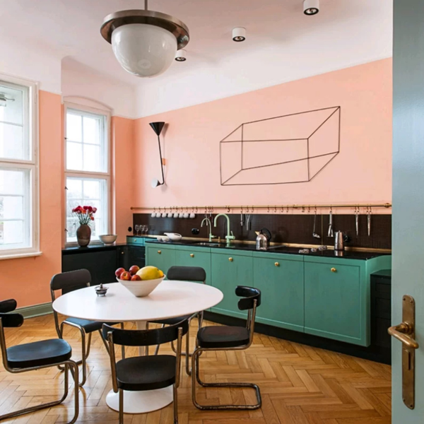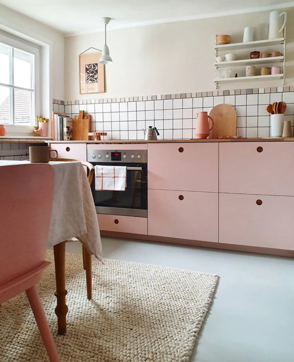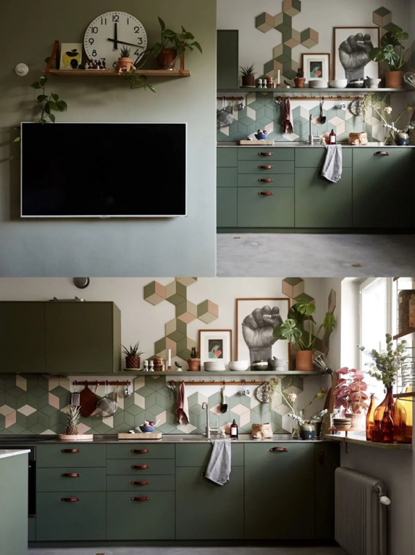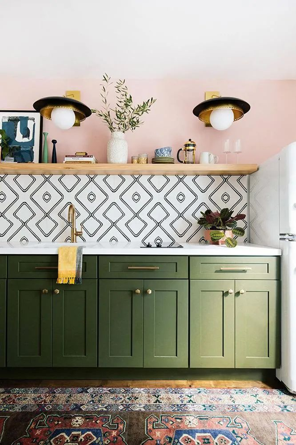 綠色+果粉,北歐風(fēng)或混搭風(fēng)格都可以選擇的配色,俏皮又復(fù)古。