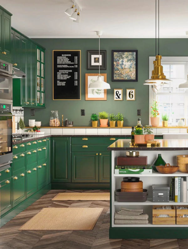 墨綠色不常見,但其實(shí)非常適合北歐風(fēng)格,一般需要光線較好的空間,才能有非常好的視覺效果和質(zhì)感。