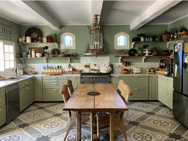 同樣具有自然氣息的綠色櫥柜,清新、養(yǎng)眼,絕對(duì)是廚房的一大亮點(diǎn)。