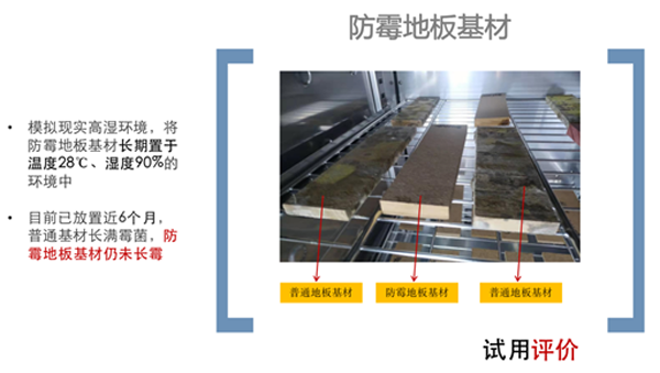 ▲普通地板與大亞防霉地板基材的對(duì)比實(shí)驗(yàn)