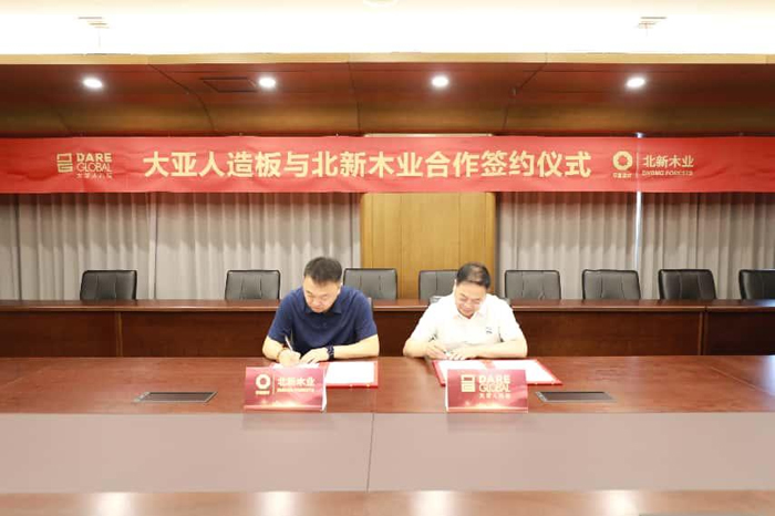 2025年6月30日,大亞人造板與央企北新木業(yè)在大亞人造板集團(tuán)有限公司總部正式簽署了竹香板戰(zhàn)略協(xié)議。雙方將聚焦竹香板研發(fā)、生產(chǎn)與市場推廣,共同打造綠色低碳家居新標(biāo)桿。此次合作標(biāo)志著中國板材行業(yè)在“雙碳”戰(zhàn)略下邁出關(guān)鍵一步,為環(huán)保板材市場注入新動能。